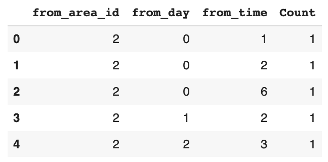 Count: Number of taxi requests coded as 1, 2, 3...