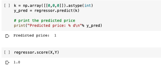Using this Decision tree for my data, I get a score of 1.0. the result is predicted for an input of [0,0,0].